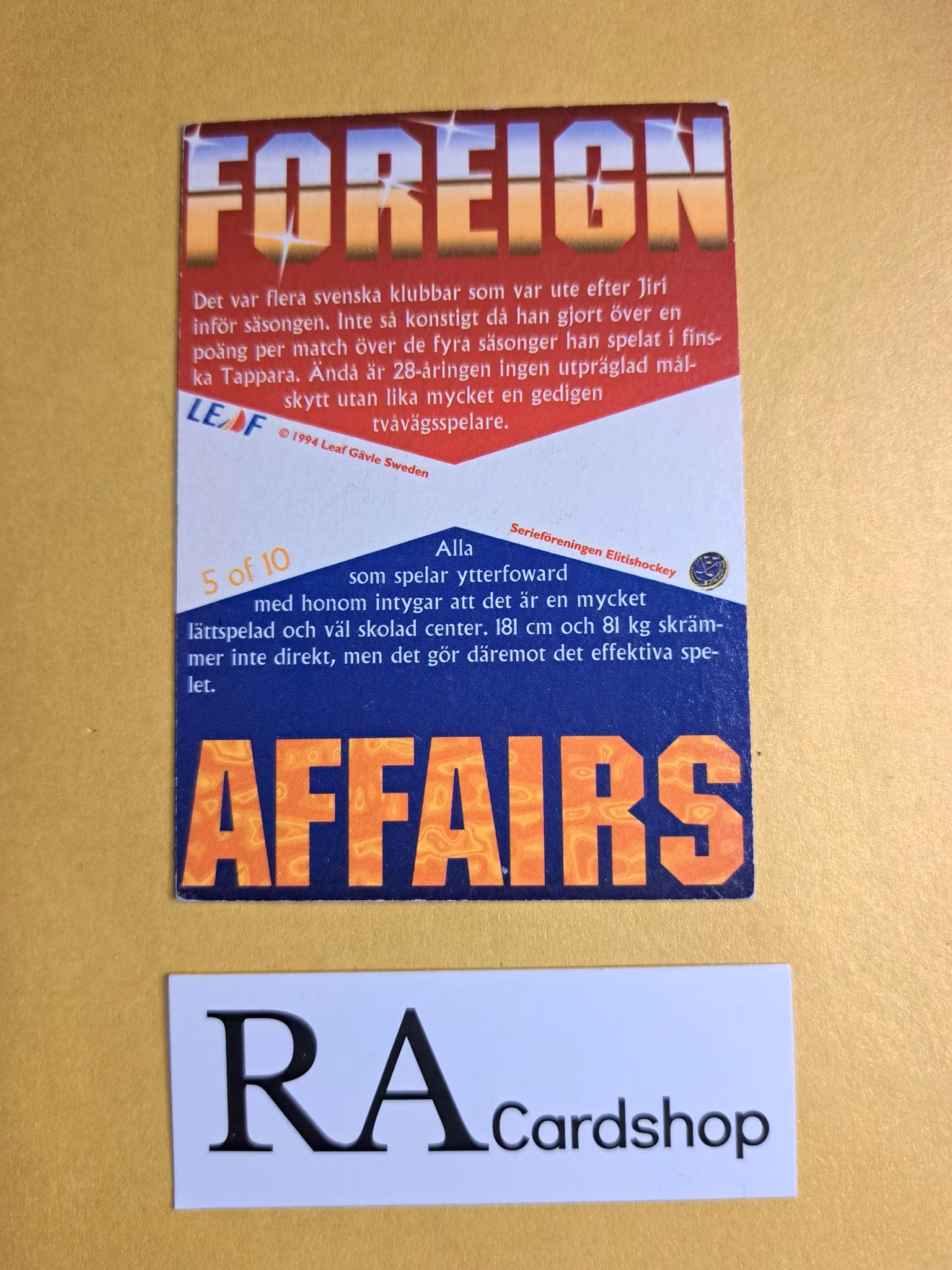 Jiri Kucera Foerign Affairs 94-95 Leaf #5 of 10 SHL HockeyKomplettera eller utöka din samling hos oss, vi har tusentals löskort.Skickas 1-5 dagar efter mottagen