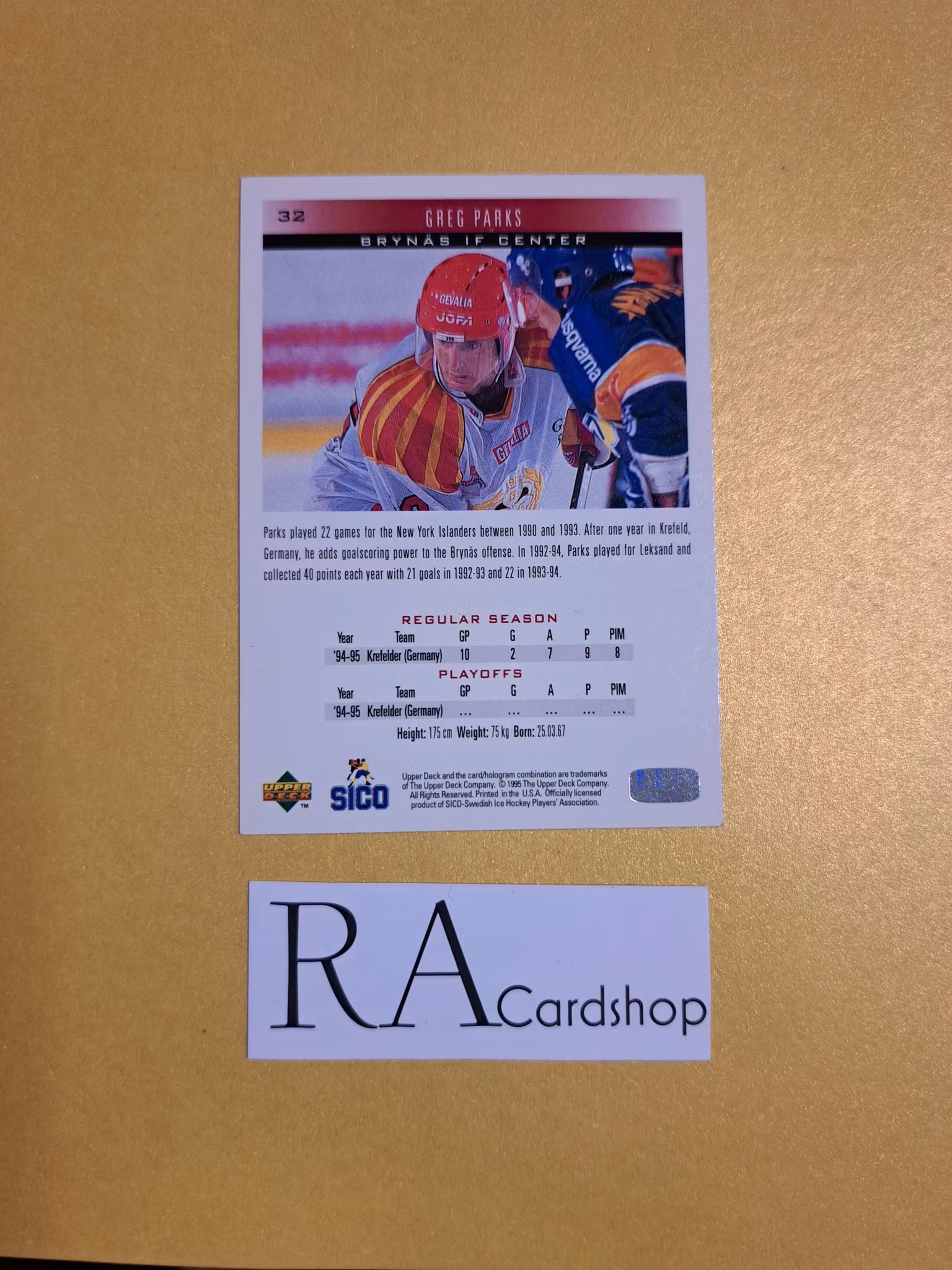 Greg Parks (1) 95-96 Upper Deck Swedish #32