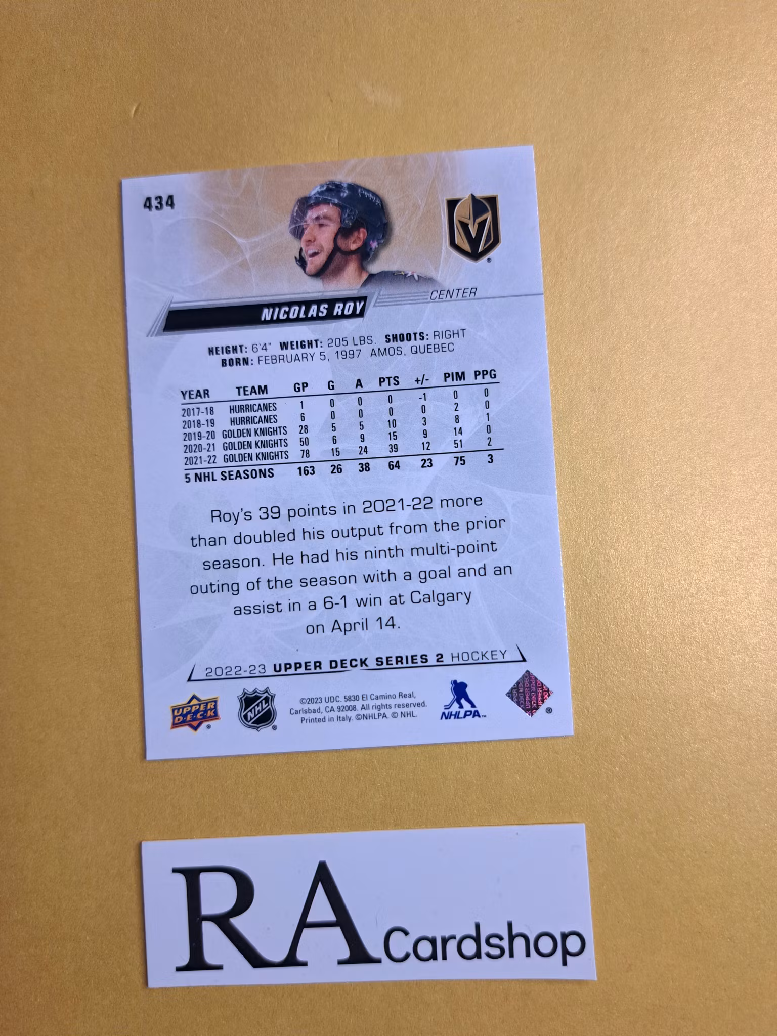 #434 Nicolas Rov 2022-23 Upper Deck Series 2 Hockey