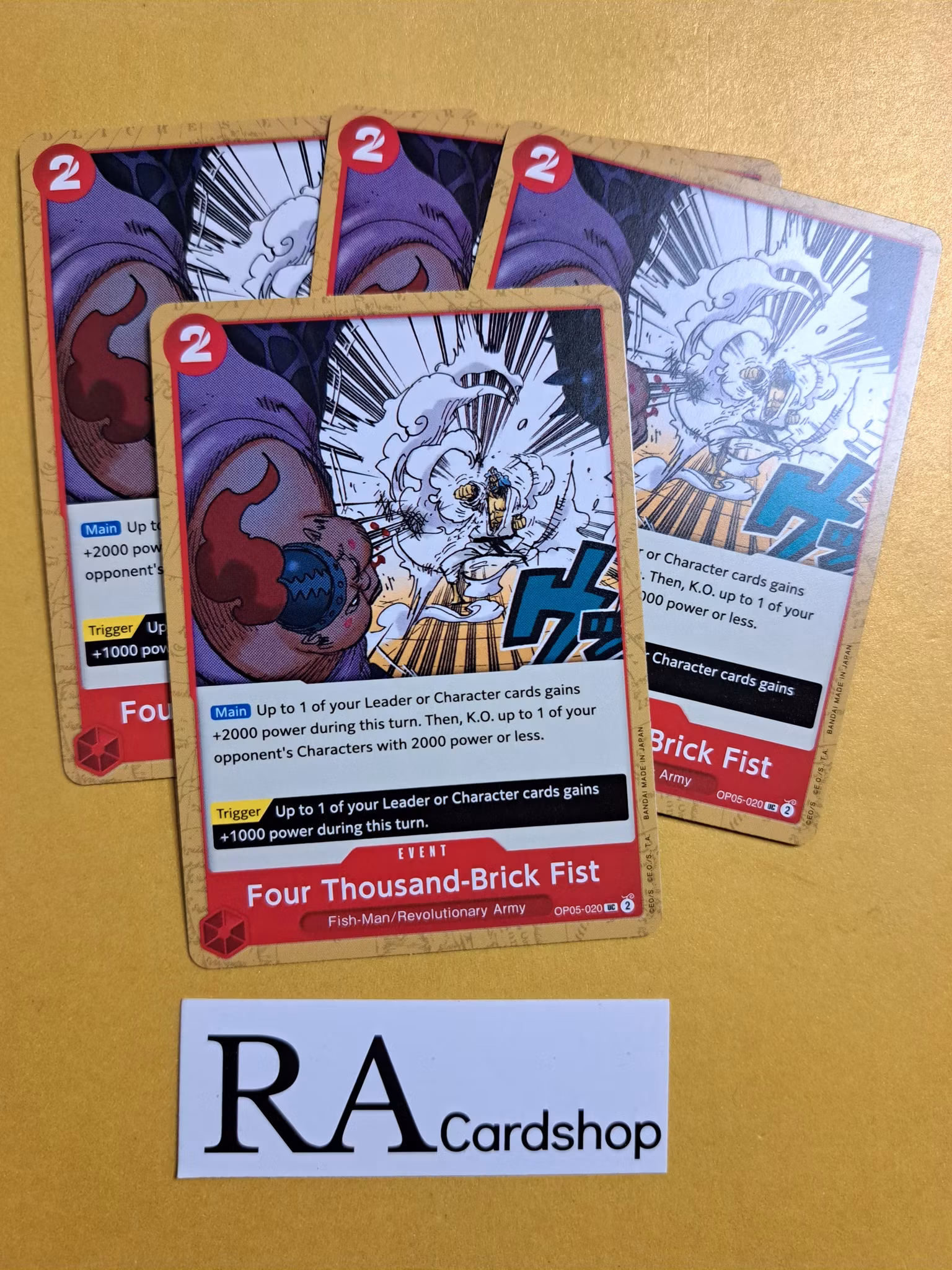 Four Thousand-Brick Fist Uncommon Playset OP05-020 Awakening of the New Era OP05 One Piece Card GameFull Playset 4 CardsKomplettera eller utöka din samling hos