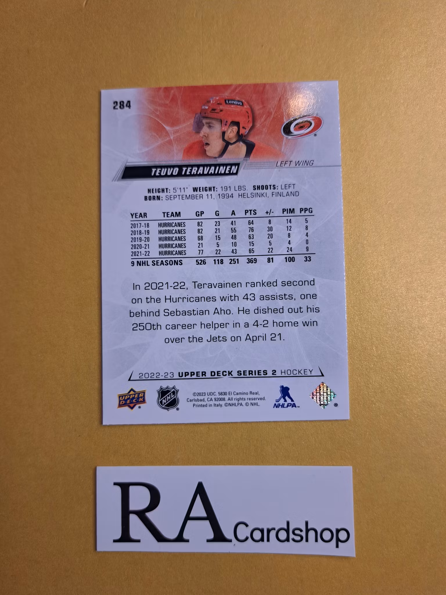 #284 Teuvo Teravainen 2022-23 Upper Deck Series 2 Hockey