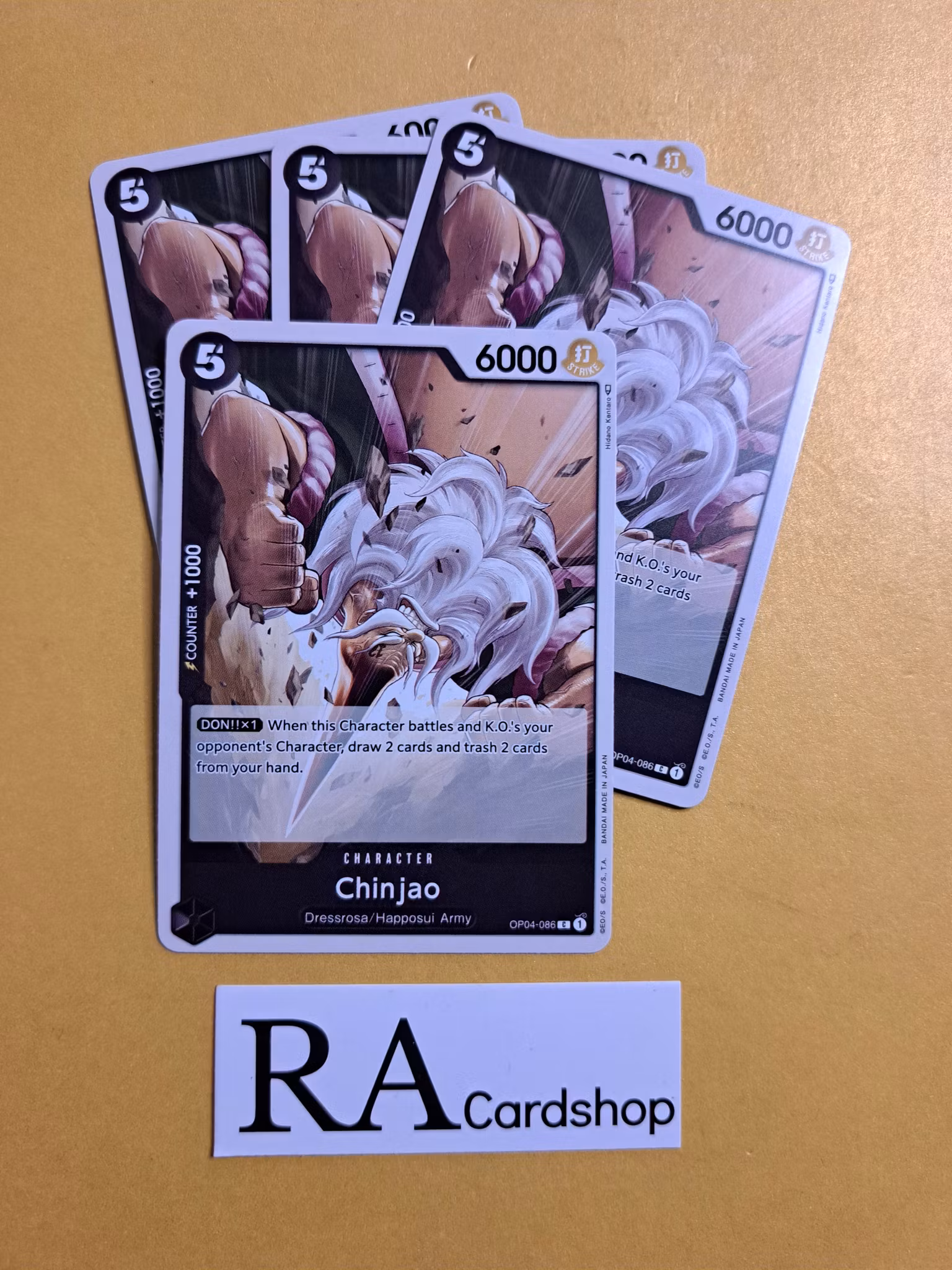 Chinjao Common Playset OP04-086 Kingdoms of Intrigue OP04 One Piece Card GameFull Playset 4 Cards.Komplettera eller utöka din samling hos oss, vi har tusentals