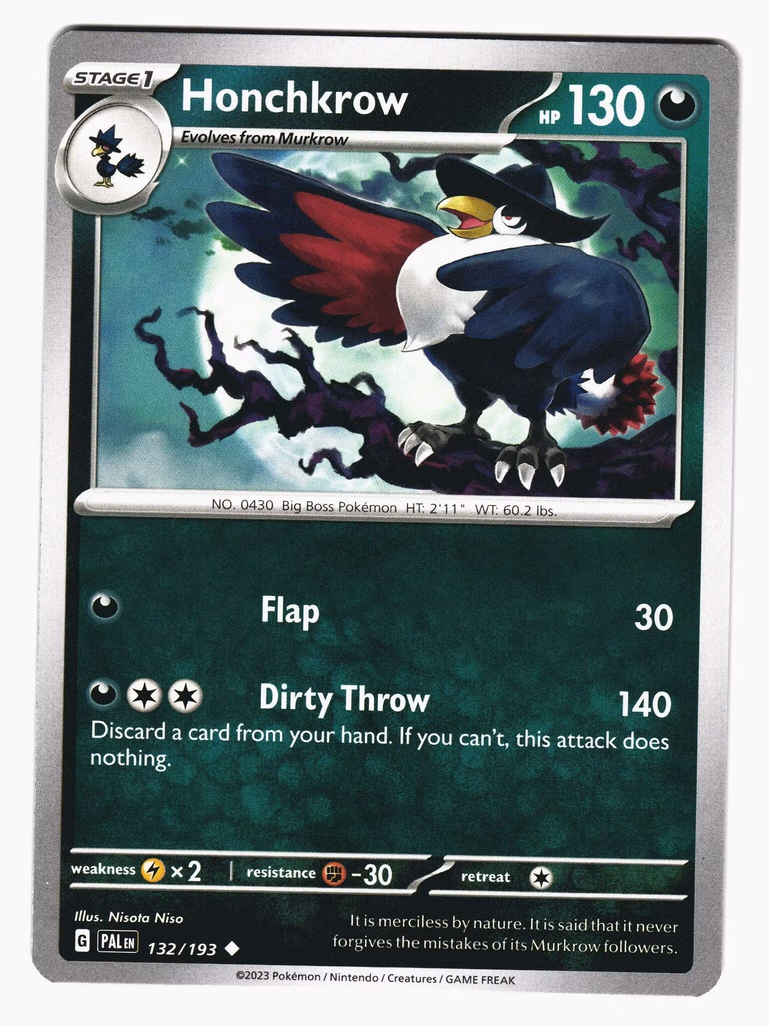 Honchkrow Uncommon 132/193 Paldea Evolved Pokemon