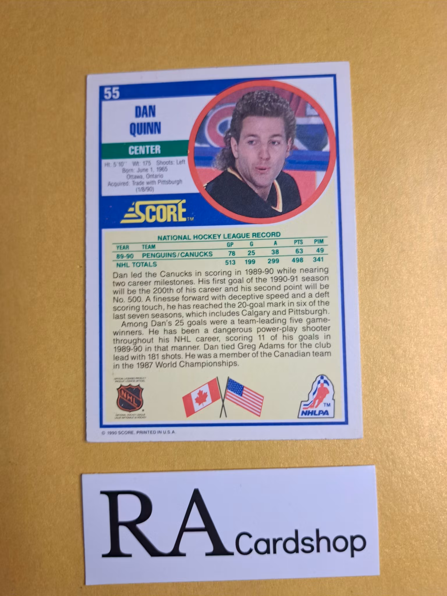Dan Quinn 90-91 Score American #55 NHL Hockey