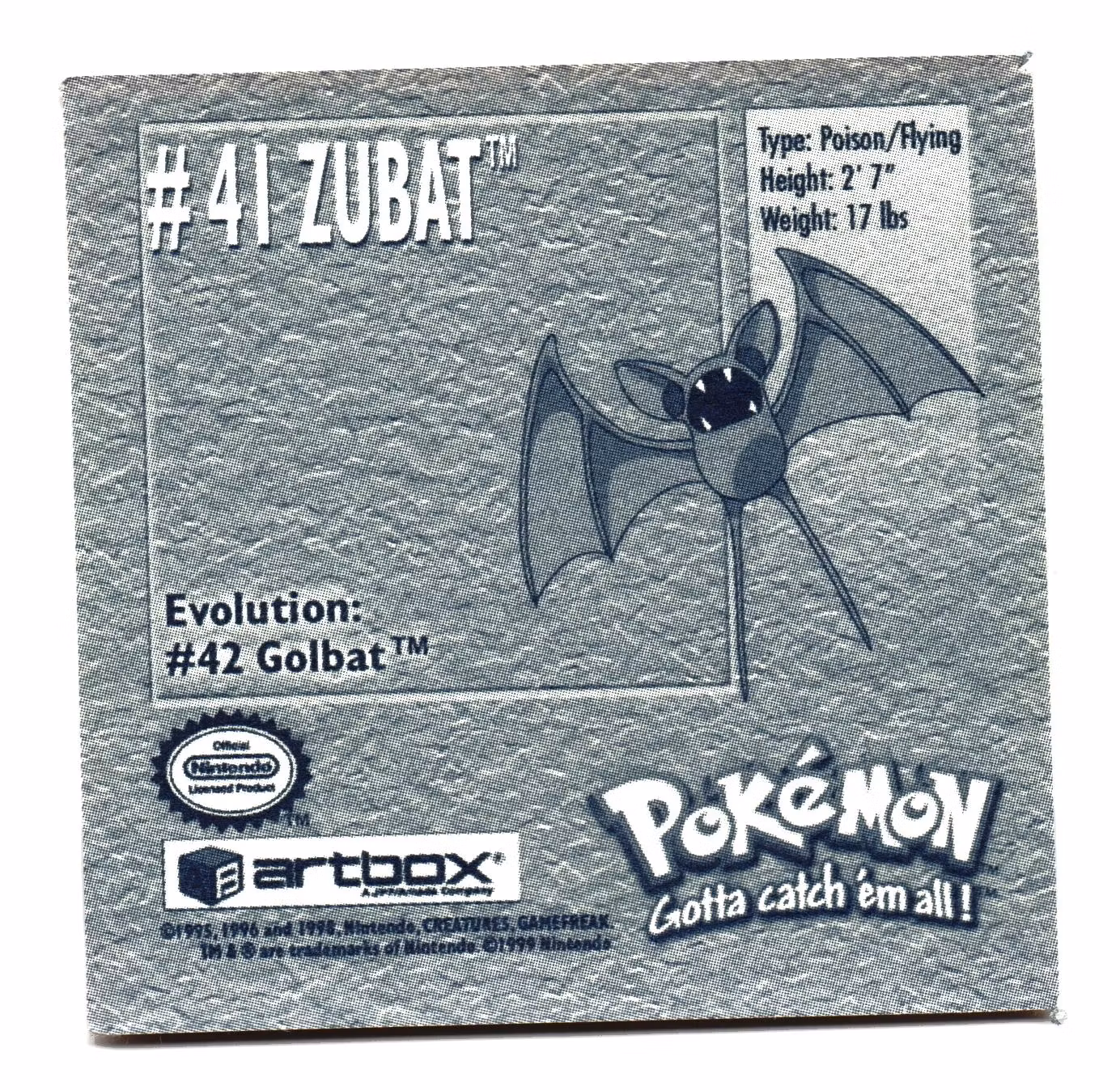 Zubat #41 Stickers 1999 Series 1 Pokemon