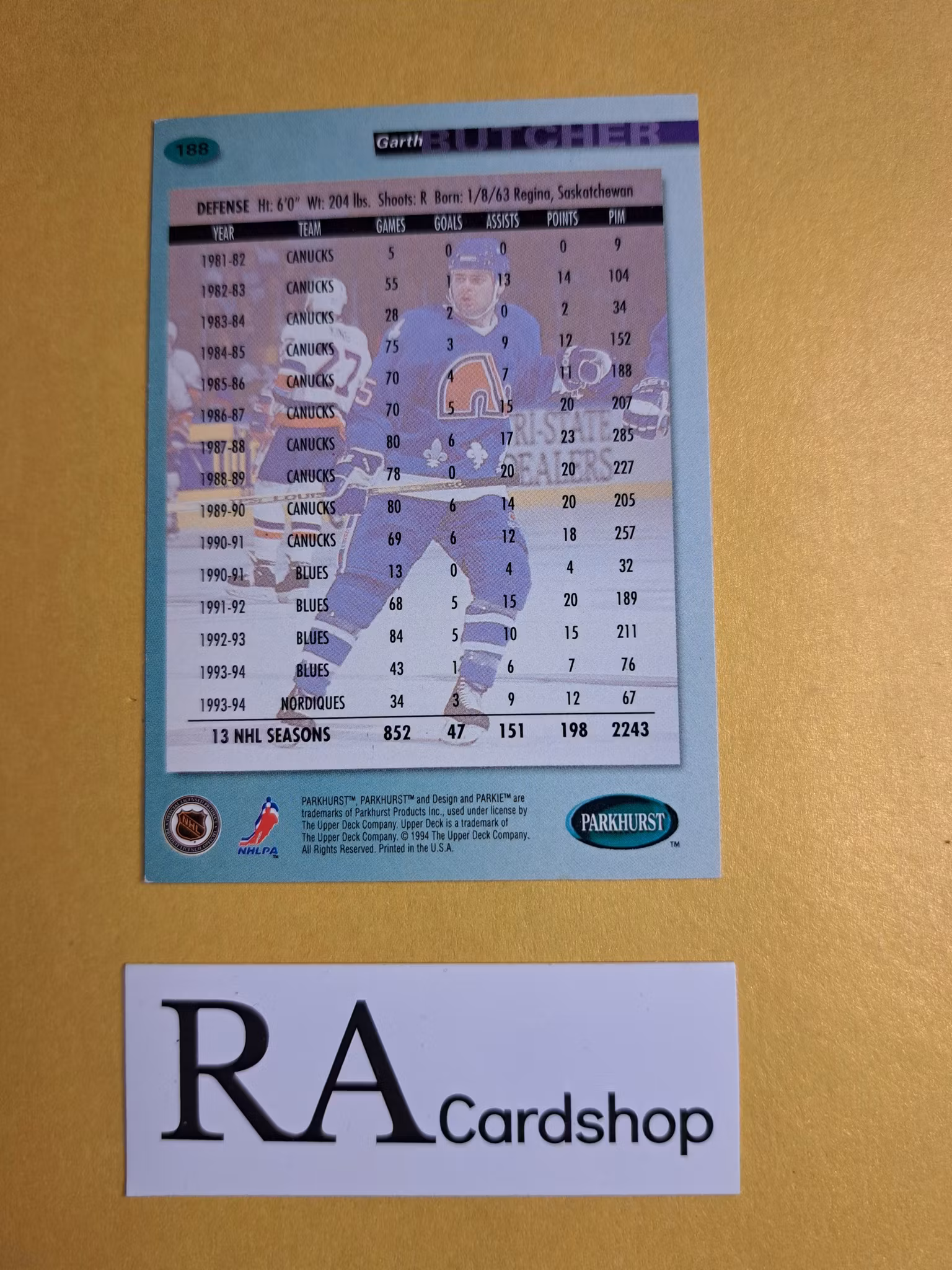 Garth Butcher (2) 94-95 Parkhurst #188 NHL Hockey