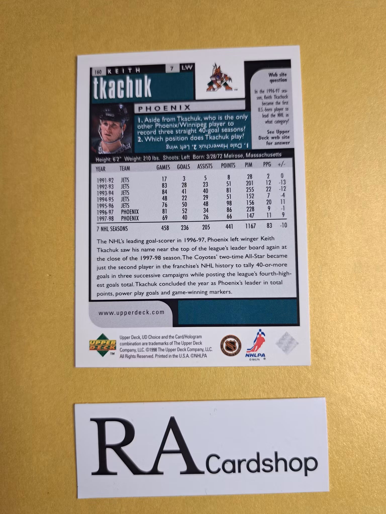 Keith Tkachuk 98-99 UD Choice #160 NHL Hockey