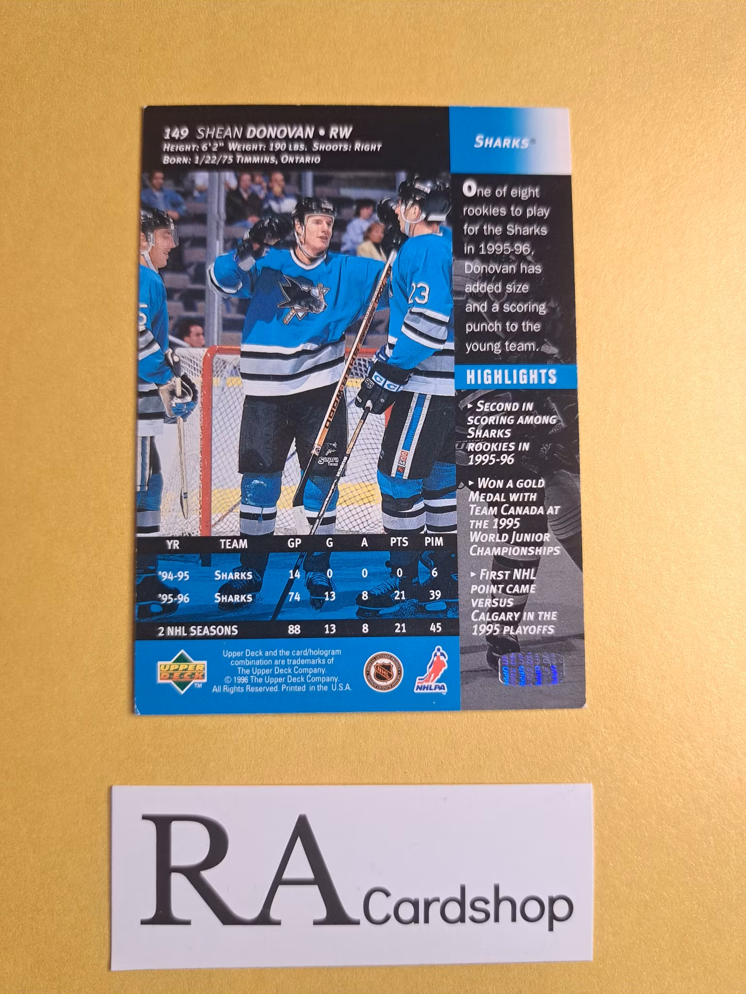Shean Donovan (1) 96-97 Upper Deck #149 NHL HockeyKomplettera eller utöka din samling hos oss, vi har tusentals löskort.Skickas 1-5 dagar efter mottagen betalni
