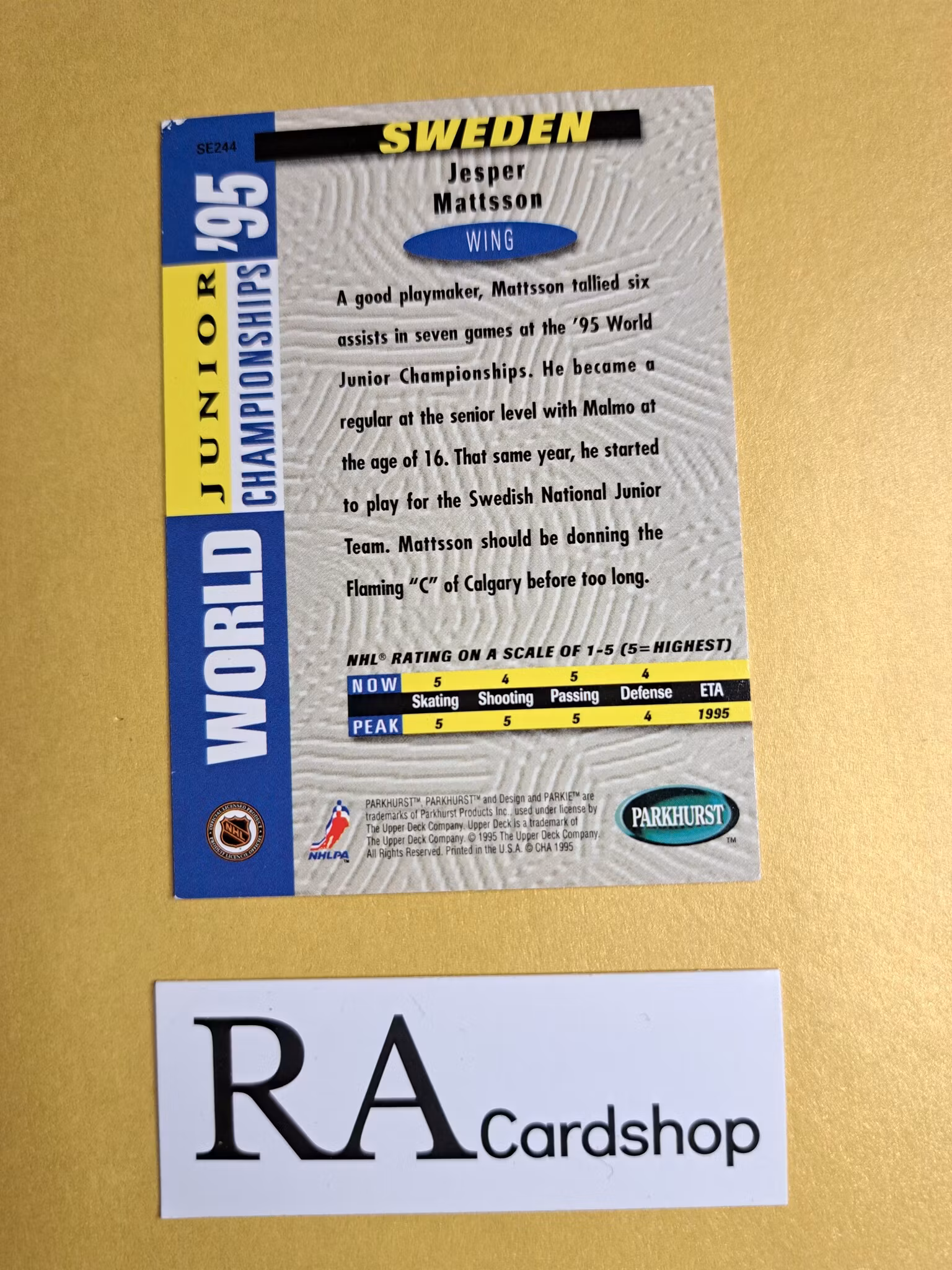 Jesper Mattsson Sverige 94-95 Parkhurst #SE244 Hockey